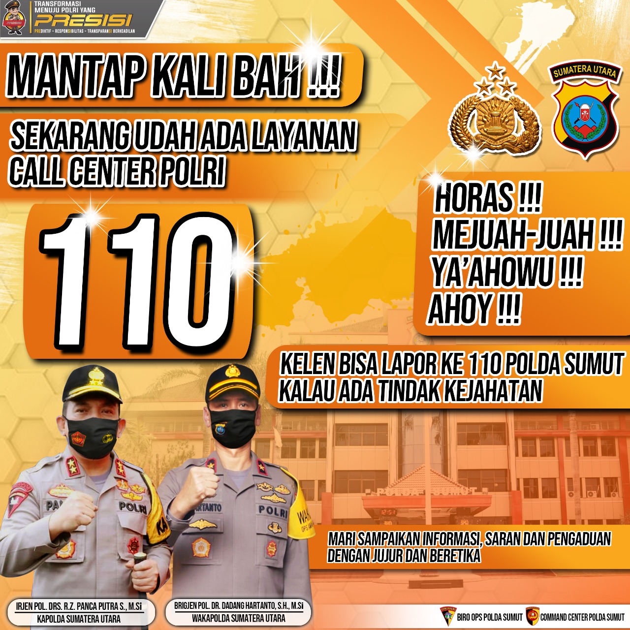"Disediakannya call center 110 itu bentuk perhatian Polri memberikan pelayanan yang prima kepada masyarakat di Sumatera Utara, Indonesia," katanya.